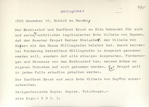 | Bestand | Höllinghofen, Urkunden | alle Regesten |