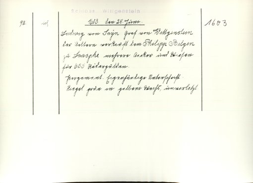 | Benutzungsort | Fürstliches Archiv zu Sayn-Wittgenstein-Hohenstein | |||||||
