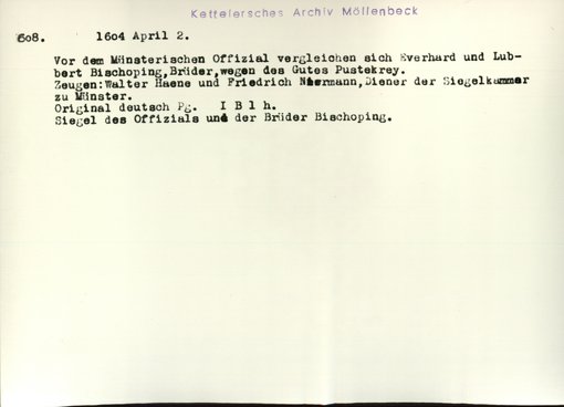 | Bestand | Möllenbeck, Haus, Urkunden | alle Regesten |