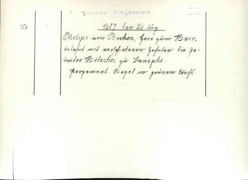 | Benutzungsort | Fürstliches Archiv zu Sayn-Wittgenstein-Hohenstein | |||||||