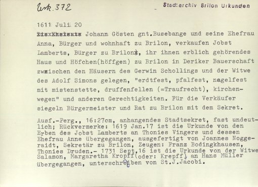 | Benutzungsort | Stadtarchiv Brilon | |||||||