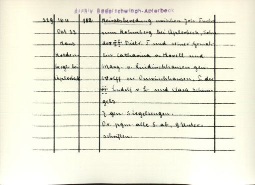 | Bestand | Aplerbeck, Haus Rodenberg, Urkunden | alle Regesten |