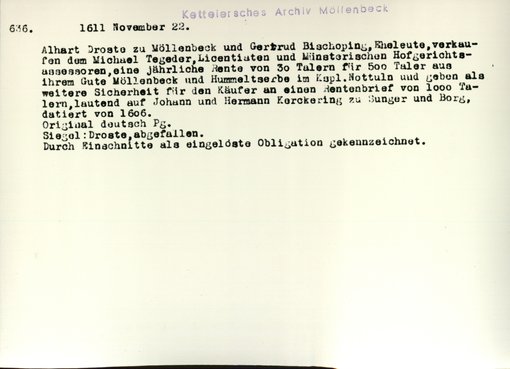 | Bestand | Möllenbeck, Haus, Urkunden | alle Regesten |