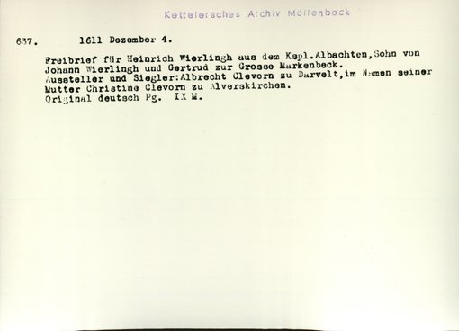 | Bestand | Möllenbeck, Haus, Urkunden | alle Regesten |