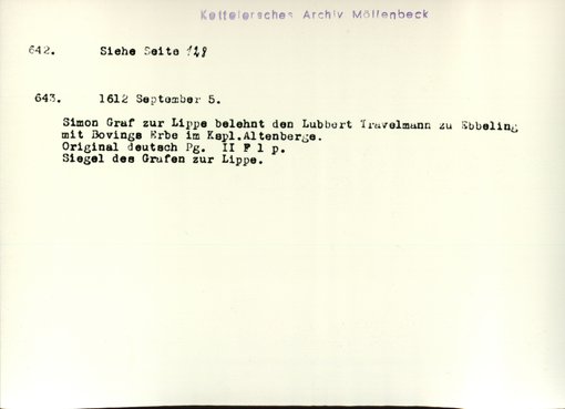 | Bestand | Möllenbeck, Haus, Urkunden | alle Regesten |
