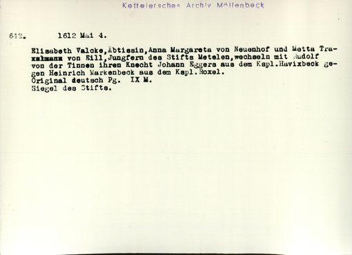 | Bestand | Möllenbeck, Haus, Urkunden | alle Regesten |