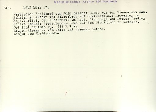 | Bestand | Möllenbeck, Haus, Urkunden | alle Regesten |