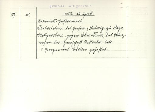 | Benutzungsort | Fürstliches Archiv zu Sayn-Wittgenstein-Hohenstein | |||||||