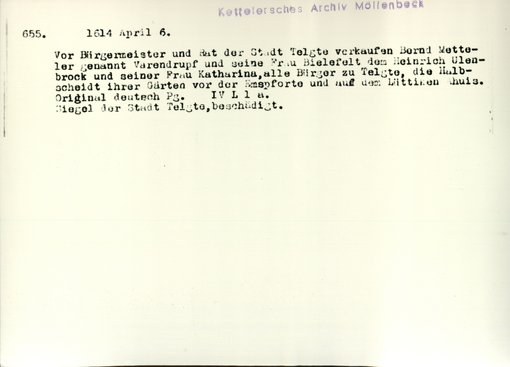 | Bestand | Möllenbeck, Haus, Urkunden | alle Regesten |