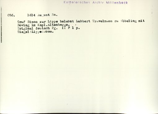 | Bestand | Möllenbeck, Haus, Urkunden | alle Regesten |