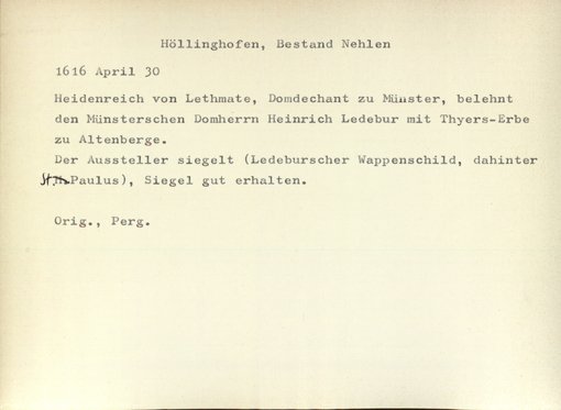| Bestand | Nehlen, Urkunden | alle Regesten |