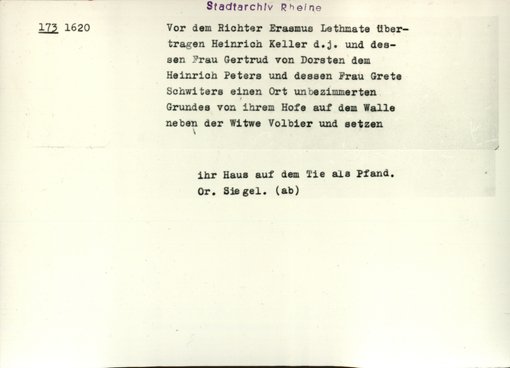 | Benutzungsort | Stadtarchiv Rheine | |||||||