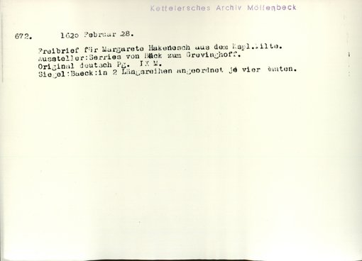 | Bestand | Möllenbeck, Haus, Urkunden | alle Regesten |