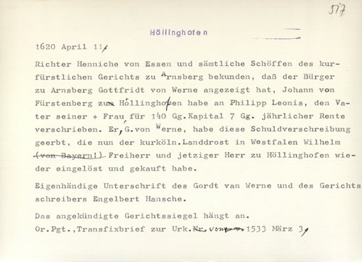 | Bestand | Höllinghofen, Urkunden | alle Regesten |
