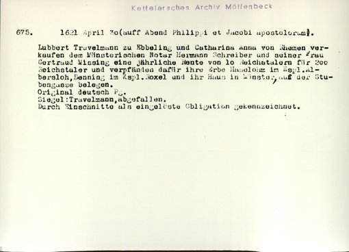 | Bestand | Möllenbeck, Haus, Urkunden | alle Regesten |