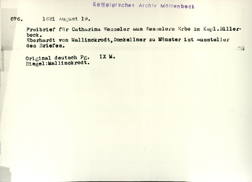 | Bestand | Möllenbeck, Haus, Urkunden | alle Regesten |