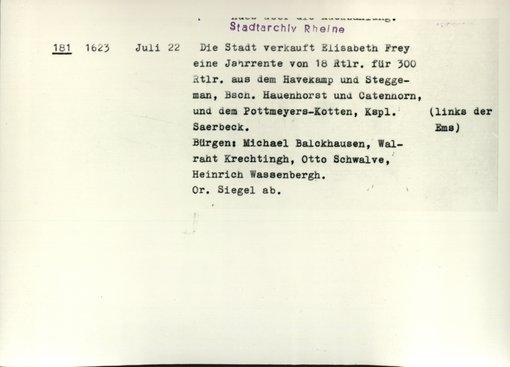 | Benutzungsort | Stadtarchiv Rheine | |||||||