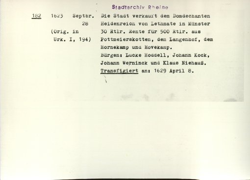 | Benutzungsort | Stadtarchiv Rheine | |||||||