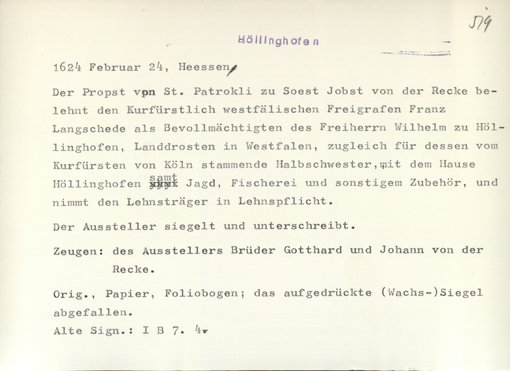 | Bestand | Höllinghofen, Urkunden | alle Regesten |