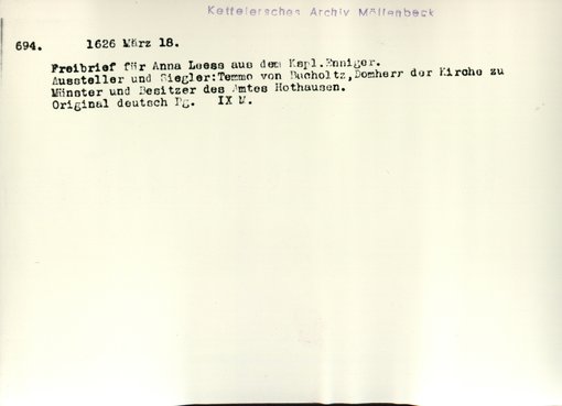 | Bestand | Möllenbeck, Haus, Urkunden | alle Regesten |