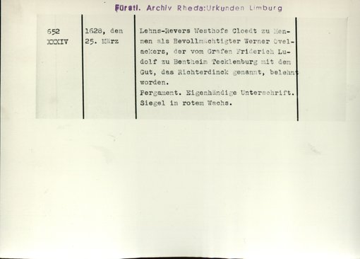| Archiv | Rheda, Fürstliches Archiv |