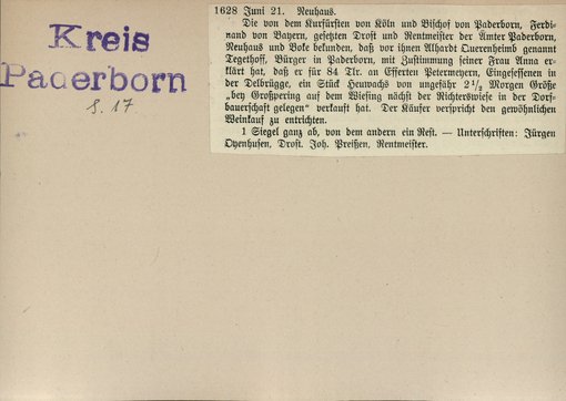 | Bestand | Bd. 3, Heft 2: Kreis Paderborn | alle Regesten |
