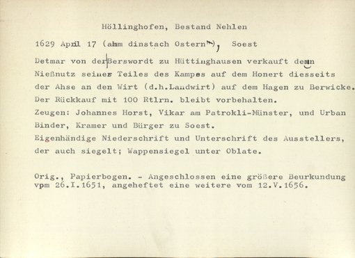 | Bestand | Nehlen, Urkunden | alle Regesten |