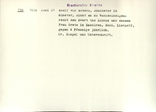 | Benutzungsort | Stadtarchiv Rheine | |||||||