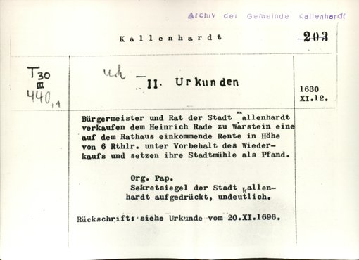 | Bestand | Kallenhardt, Stadt, Urkunden | alle Regesten |