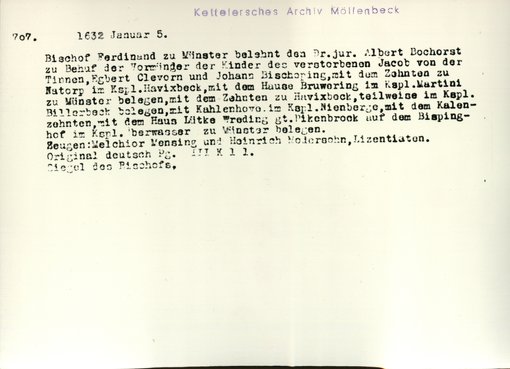| Bestand | Möllenbeck, Haus, Urkunden | alle Regesten |