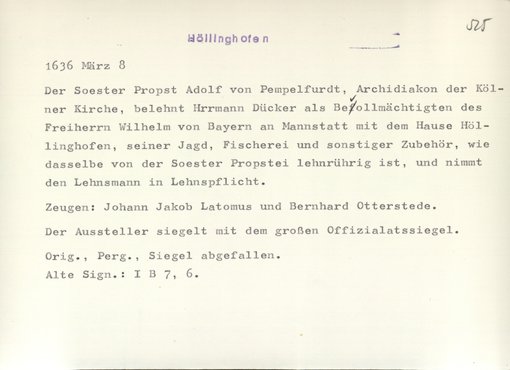 | Bestand | Höllinghofen, Urkunden | alle Regesten |