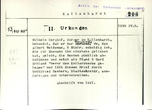 | Bestand | Kallenhardt, Stadt, Urkunden | alle Regesten |