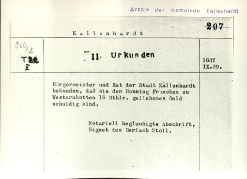 | Bestand | Kallenhardt, Stadt, Urkunden | alle Regesten |