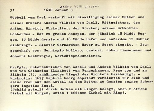 | Bestand | Gutsarchiv, Urkunden | alle Regesten |