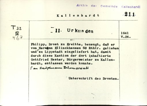 | Bestand | Kallenhardt, Stadt, Urkunden | alle Regesten |
