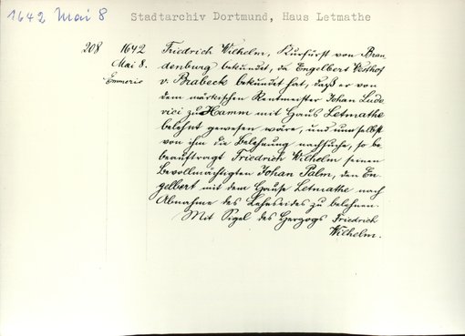 | Bestand | Letmathe, Haus, Urkunden | alle Regesten |
