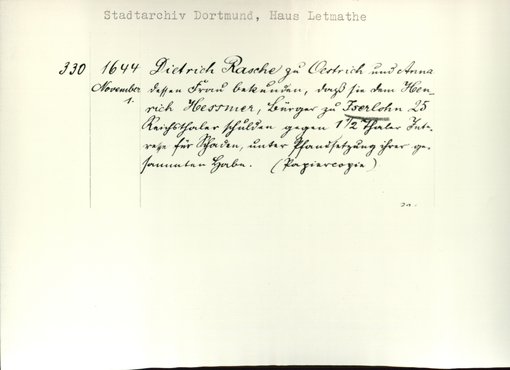 | Bestand | Letmathe, Haus, Urkunden | alle Regesten |