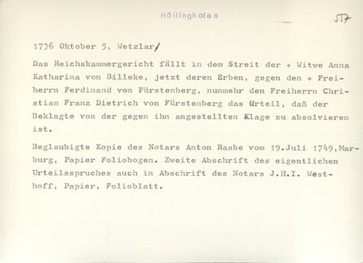 | Bestand | Höllinghofen, Urkunden | alle Regesten |