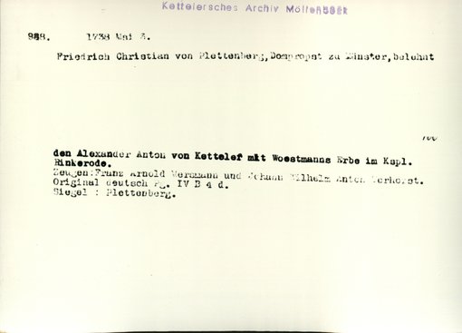 | Bestand | Möllenbeck, Haus, Urkunden | alle Regesten |