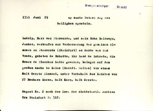 | Bestand | Bestand A, Burgsteinfurt, Urkunden | alle Regesten |