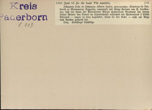 | Bestand | Bd. 3, Heft 2: Kreis Paderborn | alle Regesten |
