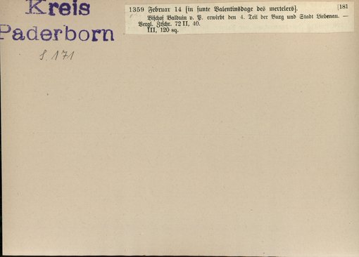 | Bestand | Bd. 3, Heft 2: Kreis Paderborn | alle Regesten |