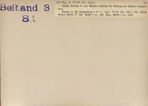 | Bestand | Beibd. 3: Bischöfliches Diözesanarchiv Münster | alle Regesten |