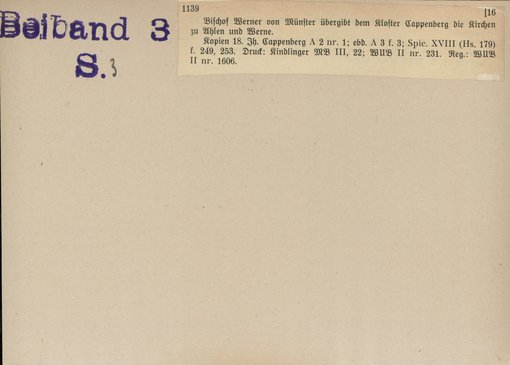 | Bestand | Beibd. 3: Bischöfliches Diözesanarchiv Münster | alle Regesten |