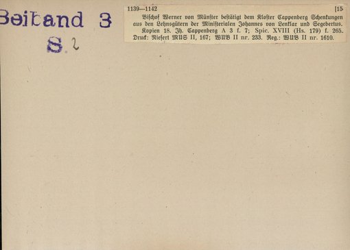 | Bestand | Beibd. 3: Bischöfliches Diözesanarchiv Münster | alle Regesten |