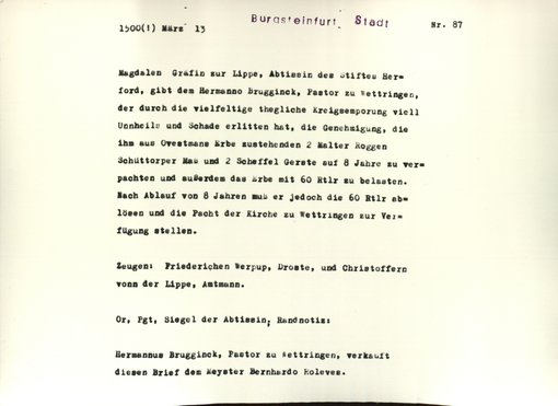 | Bestand | Bestand A, Burgsteinfurt, Urkunden | alle Regesten |