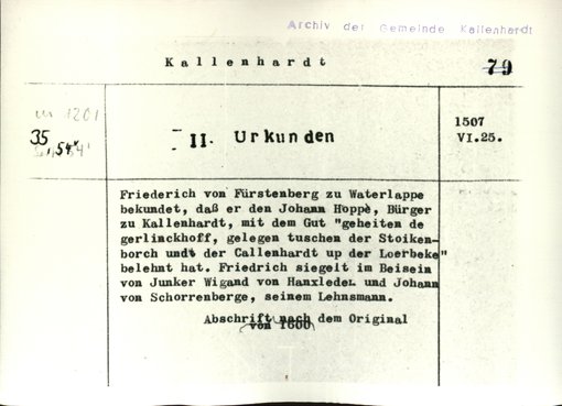 | Bestand | Kallenhardt, Stadt, Urkunden | alle Regesten |