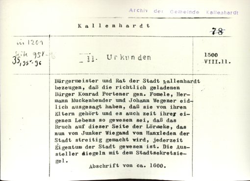 | Bestand | Kallenhardt, Stadt, Urkunden | alle Regesten |