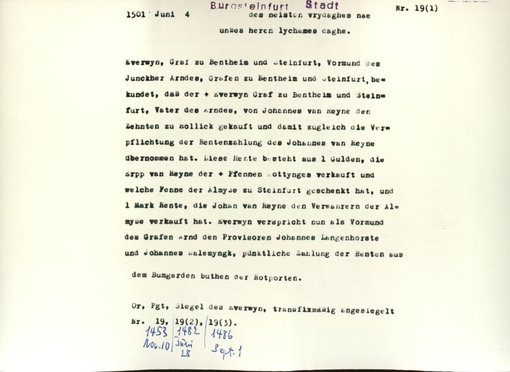 | Bestand | Bestand A, Burgsteinfurt, Urkunden | alle Regesten |