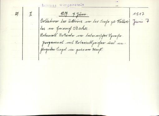 | Benutzungsort | Fürstliches Archiv zu Sayn-Wittgenstein-Hohenstein | |||||||